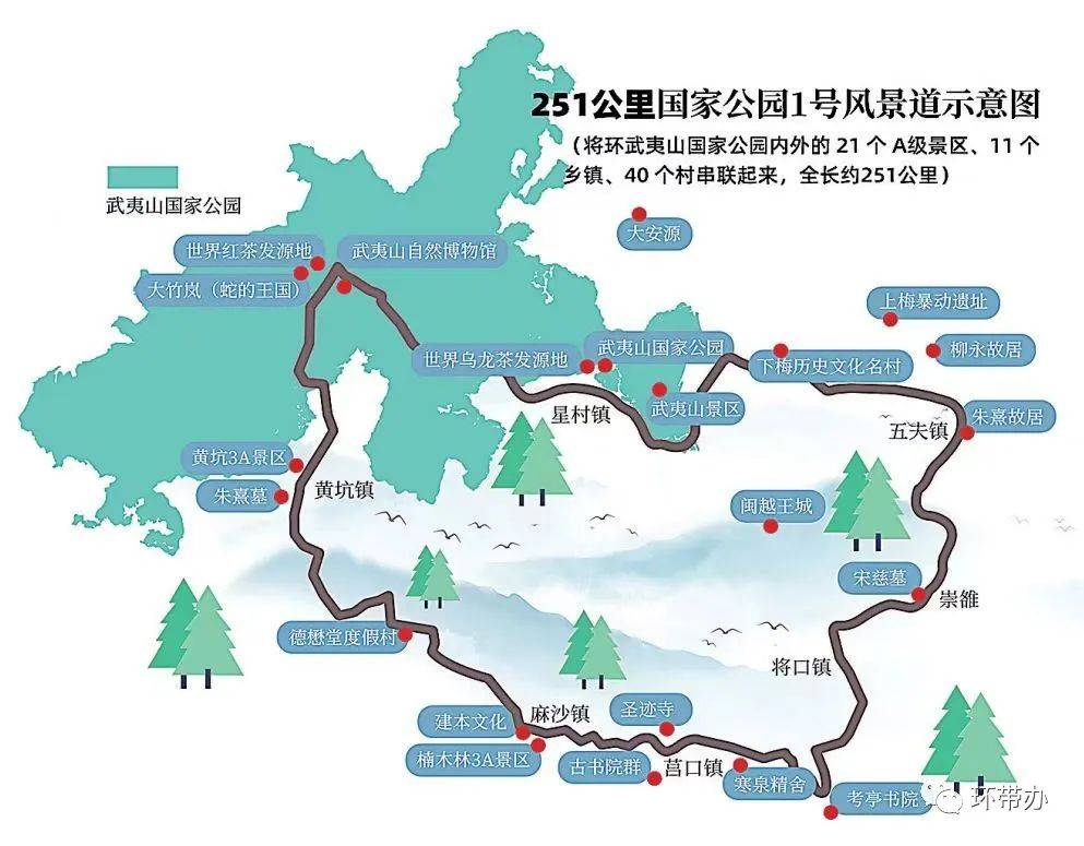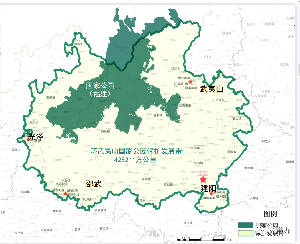 环武夷山国家公园保护发展带,简称“环带”。初步划定4252平方公里“缓冲区”,涉及武夷山市、建阳区、邵武市、光泽县,28个乡镇(街道),203个行政村(含国家公园范围内4个村)。
